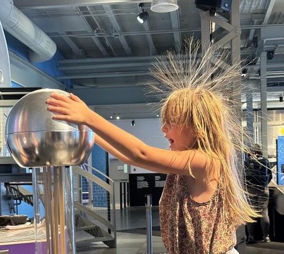 - Give yourself a whole new look in a photo with the Van de Graaf generator – It tingles, it crackles, and it makes your hair stand on end! Touch it and see! Try (if you dare) and capture it in a photo!